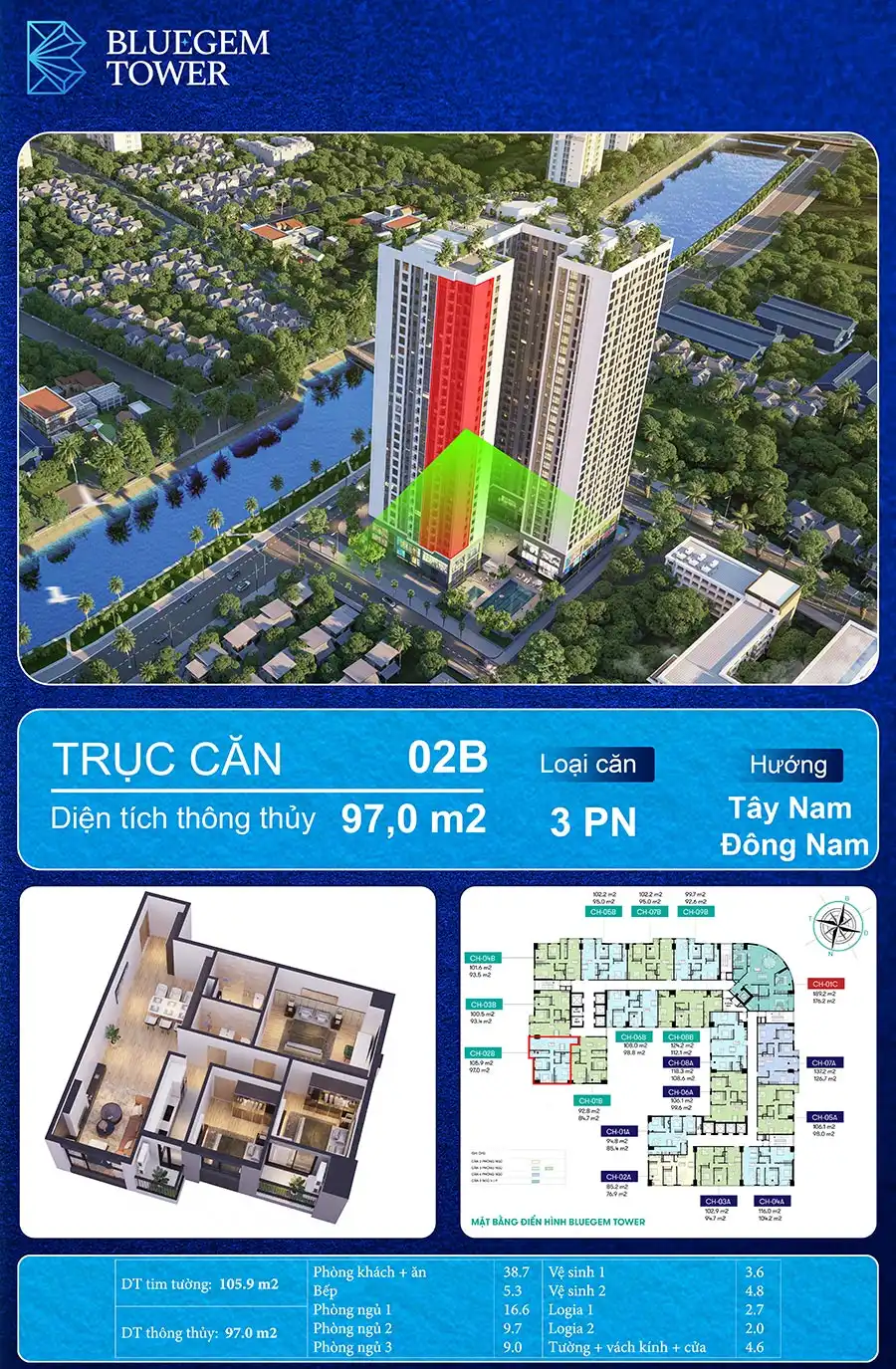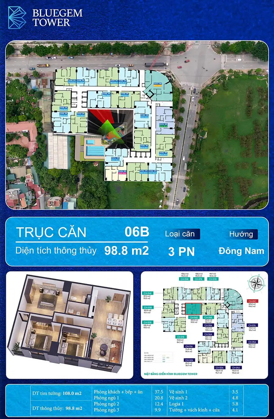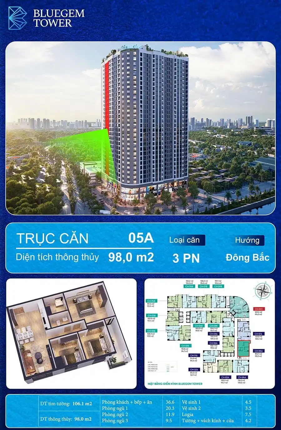 CHUNG CƯ BLUEGEM TOWER – CĂN HỘ 3 PHÒNG NGỦ CHỈ NHỈNH 6 TỶ/CĂN