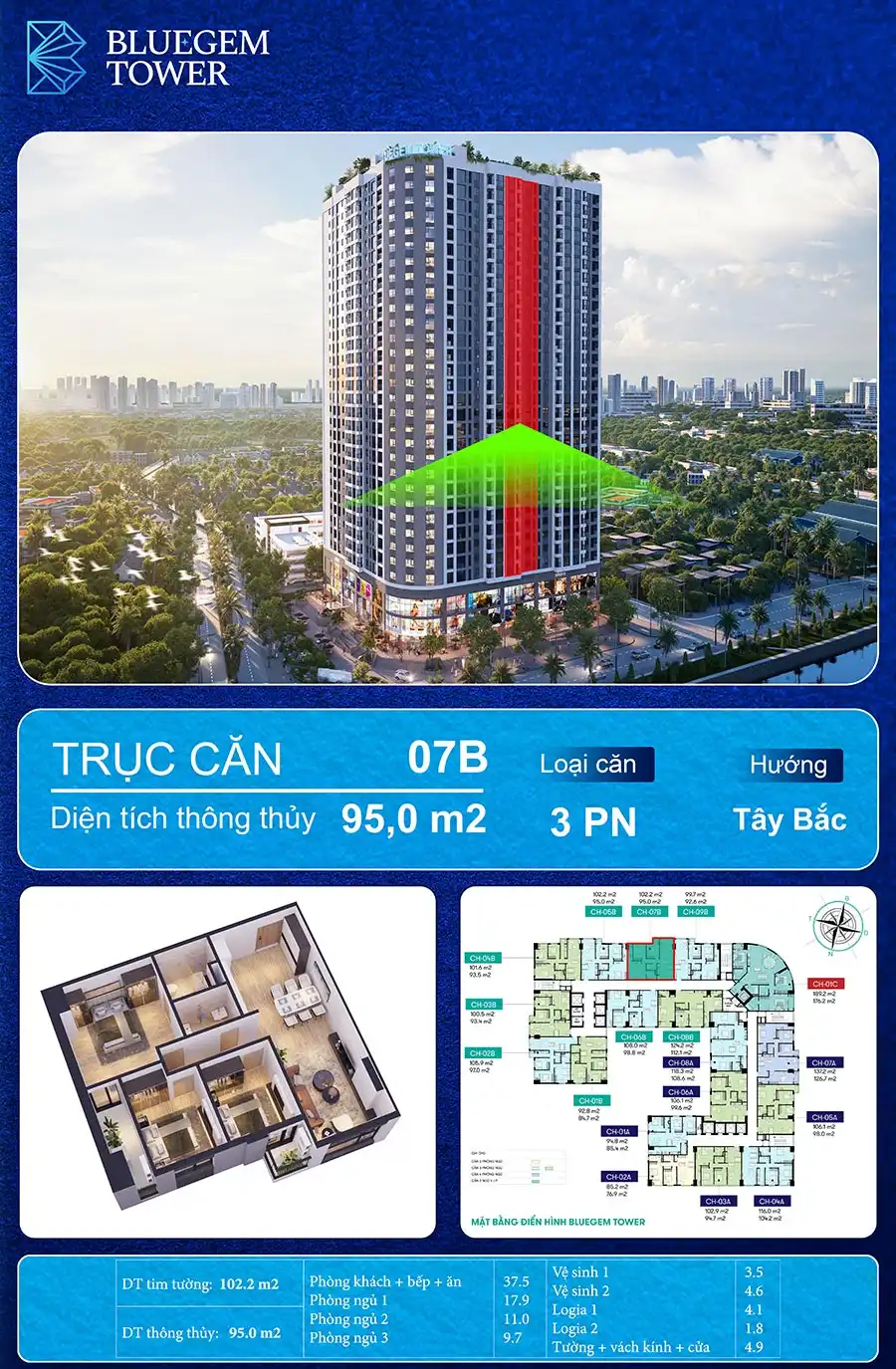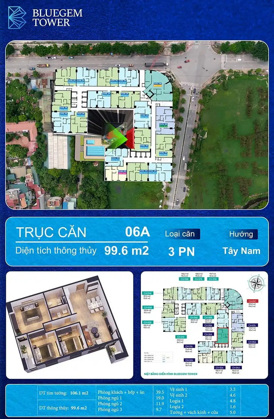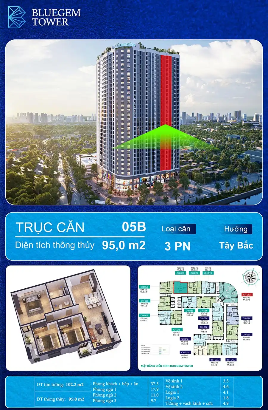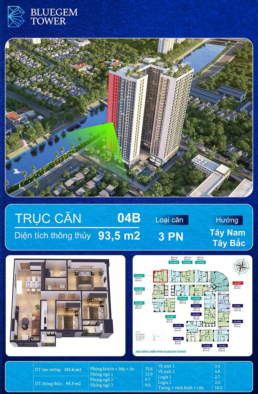 CHUNG CƯ BLUEGEM TOWER – CĂN HỘ 3 PHÒNG NGỦ CHỈ NHỈNH 6 TỶ/CĂN